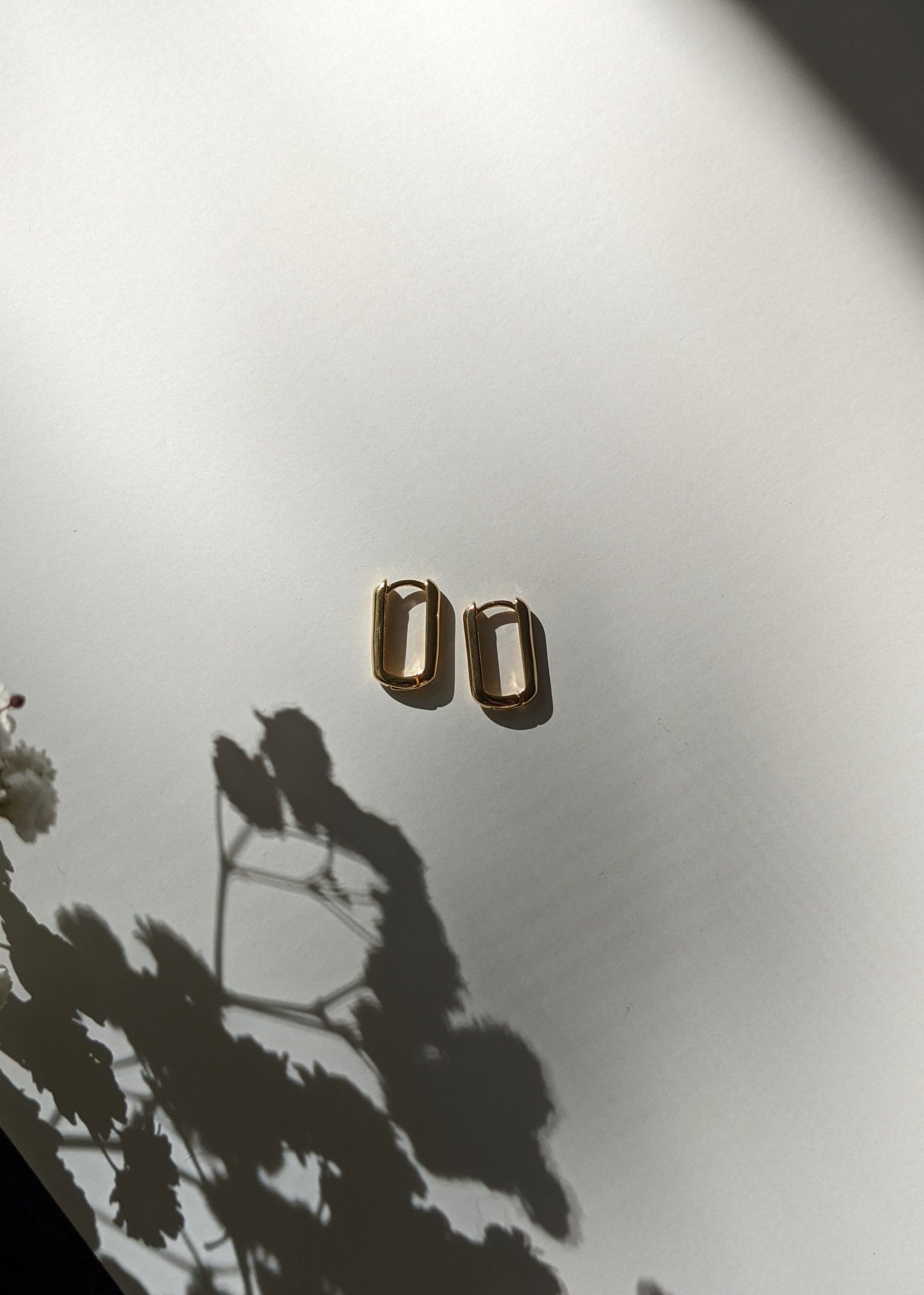 Brooklyn is the perfect mix between a hoop and paperclip chain link. These rectangle hoops are a must have classic with a slight edge, perfect for stacking or flying solo.