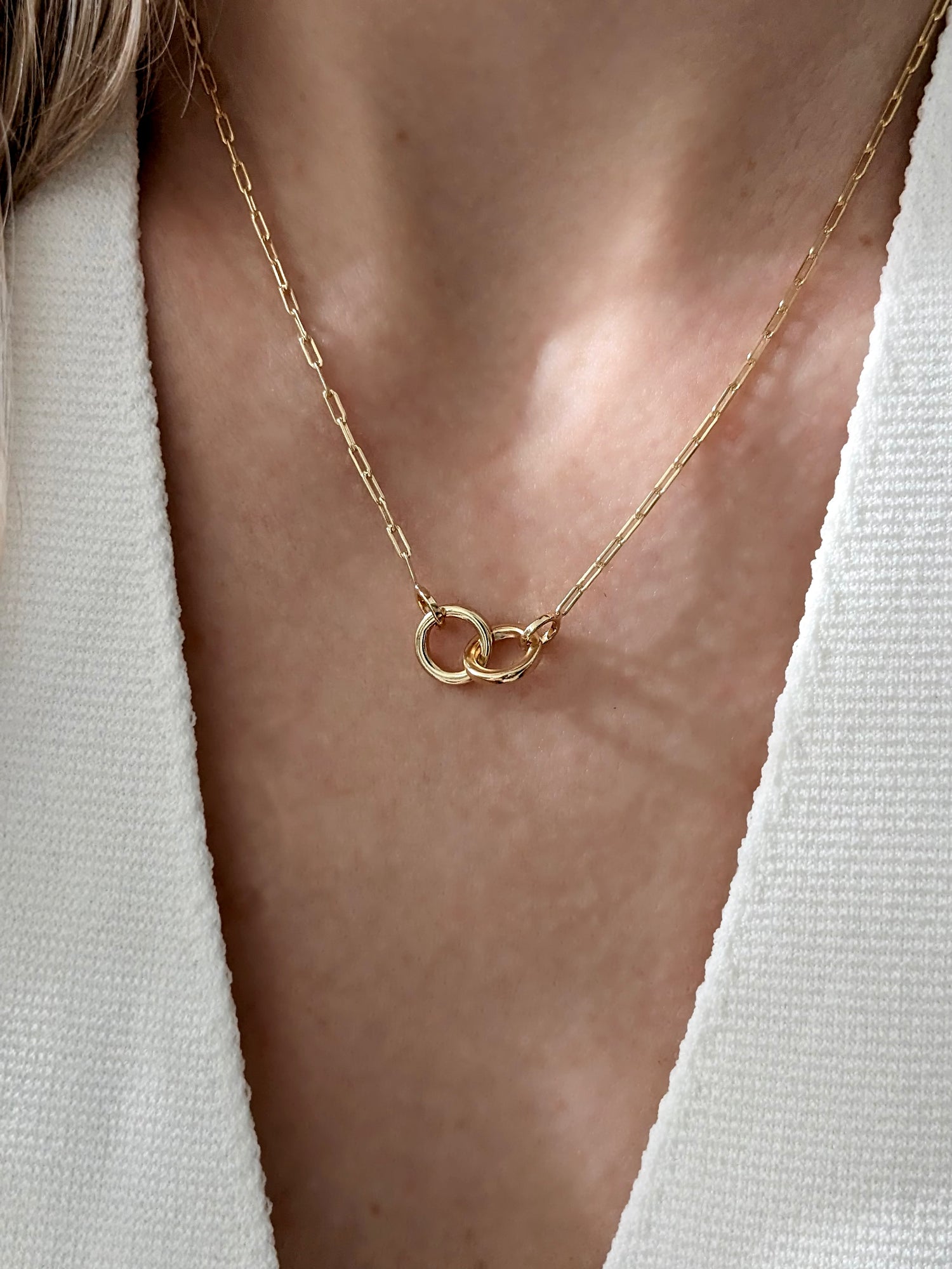 Meet Daphne, an interlocking duo link necklace on a dainty paperclip chain.
