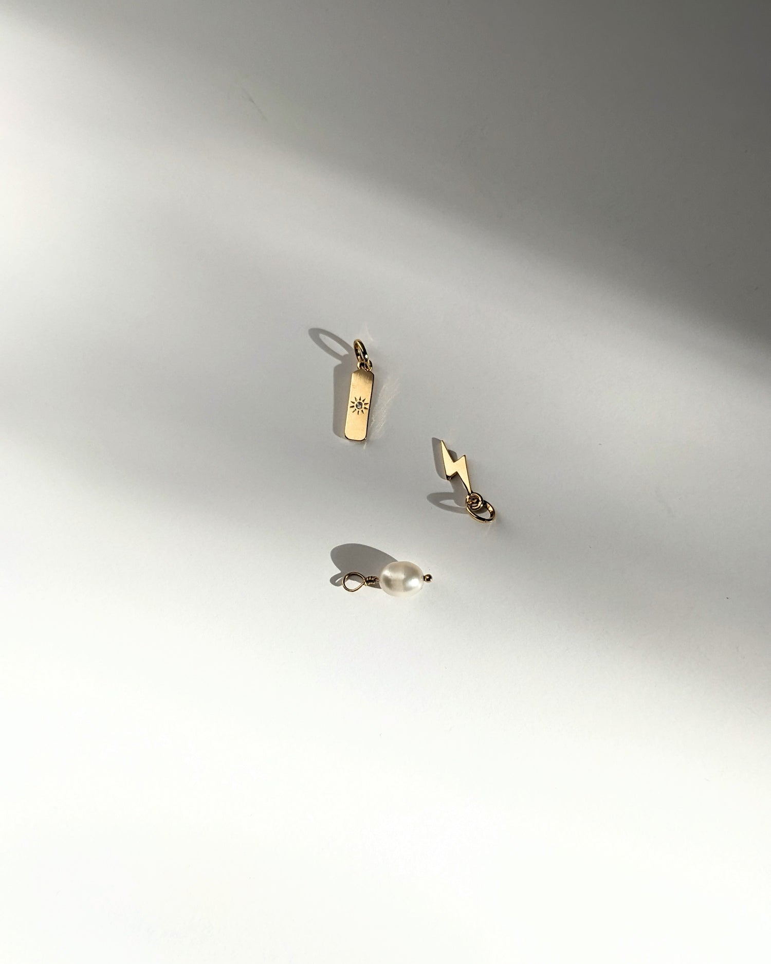 A dainty hand-wired Freshwater Pearl Charm to add to your existing charm stack or create your own charm necklace with our charm starter chain.