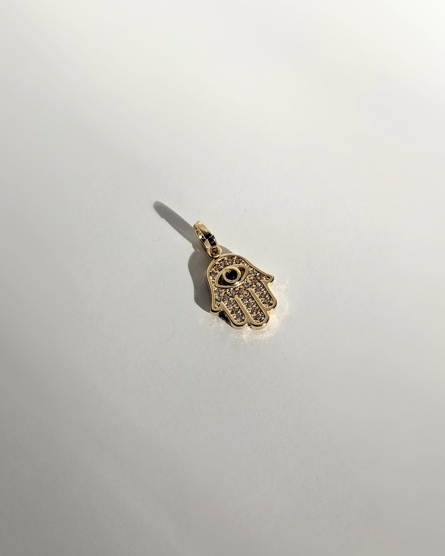 A dainty Hamza Hand Charm to add to your existing charm stack or create your own charm necklace with our charm starter chain.
