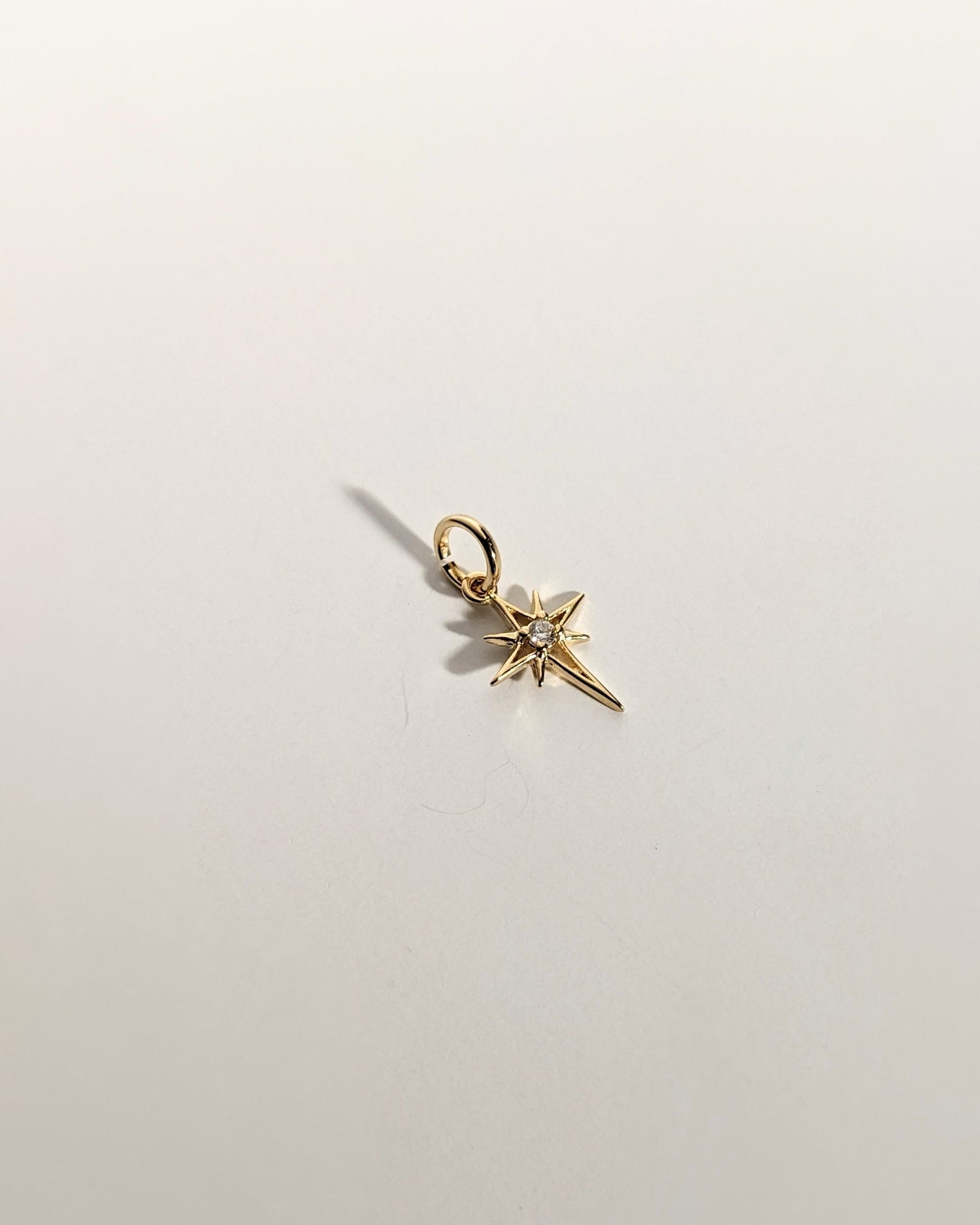 A dainty Starburst Charm to add to your existing charm stack or create your own charm necklace with our charm starter chain.